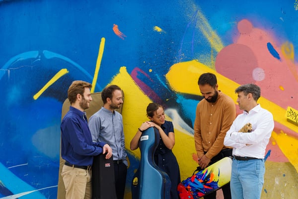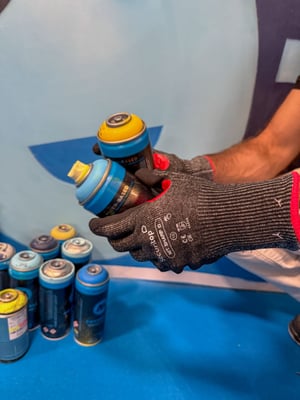 fresque, ainsi que la veste reprennent les codes du Graffiti ornés de symboles valorisant leurs secteurs d'activités (aéronautiques, chimie, médecine, énergies durables...) aux couleurs